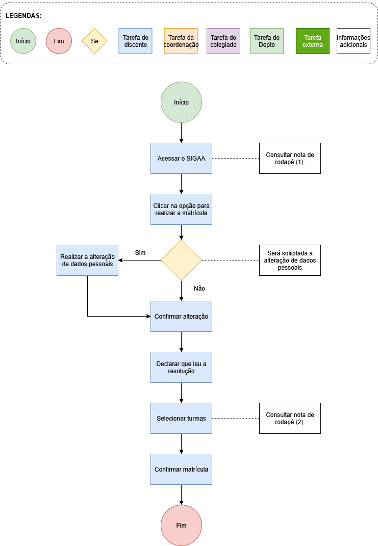 (1) Antes de iniciar o processo de matrícula, o discente deve consultar o fluxograma de disciplinas no site da coordenação do curso.