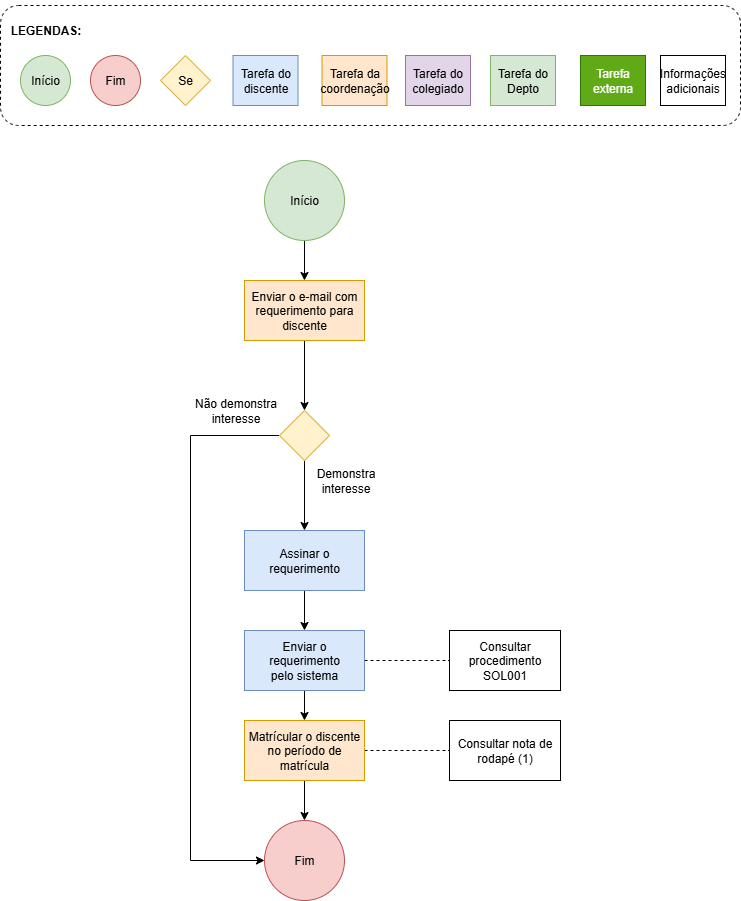 1. A coordenação irá enviar um e-mail com o requerimento de matrícula para que o discente confirme que tem interesse na vaga;