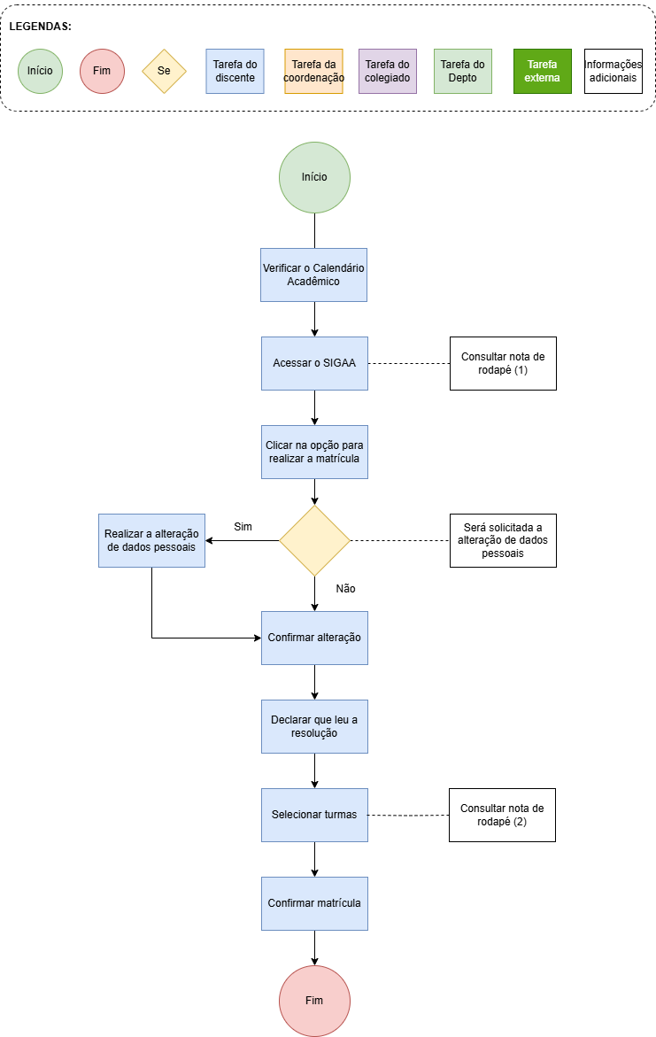(1) Antes de iniciar o processo de matrícula, o discente deve consultar o fluxograma de disciplinas no site da coordenação do curso.